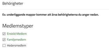 - Genom tidigare deltagande. Endast medlemmar som deltagit i de verksamhetsdelar man anger kommer att ha åtkomst till mappen.